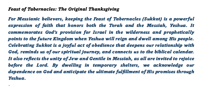 Feast of Tabernacles; Saturday, October 11, 2025 10:00 AM 1:30 PM 10:00 13:30 1304 Central Avenue Billings, MT 59102 United States (map) Google Calendar ICS Join us For a wonderful Morning of Teaching, Dance and Worship at 10:00am, Followed by a scrumptious Thanksgiving Meal